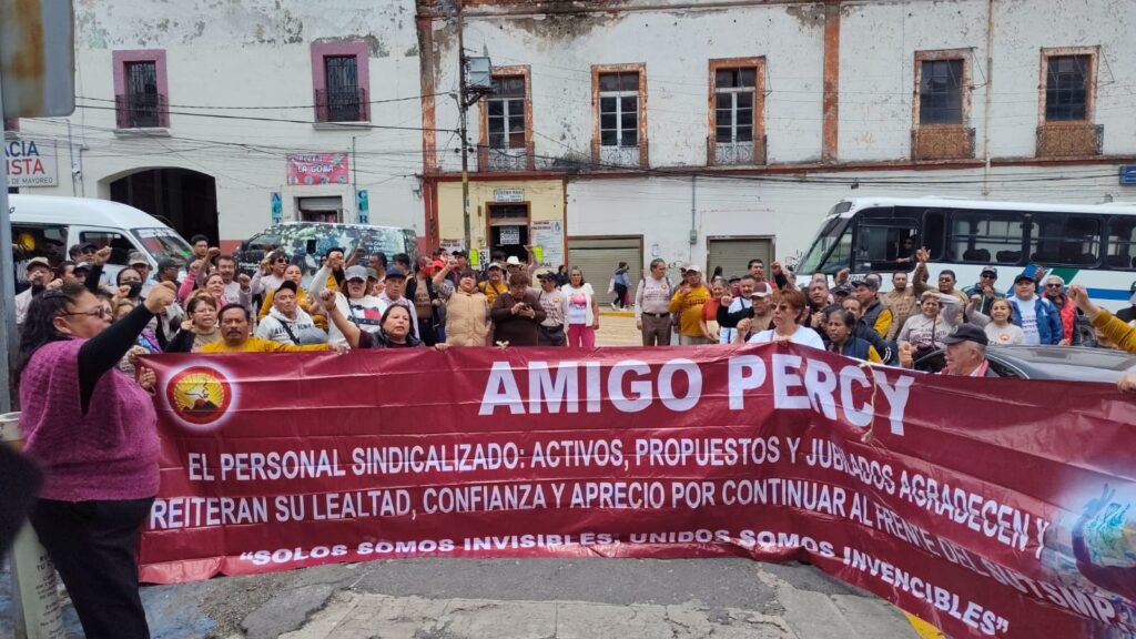 La protesta reunió a decenas de trabajadores del ayuntamiento, quienes reiteraron su respaldo a Percy “N”, asegurando que mientras no se demuestre lo contrario, él sigue siendo su secretario general.