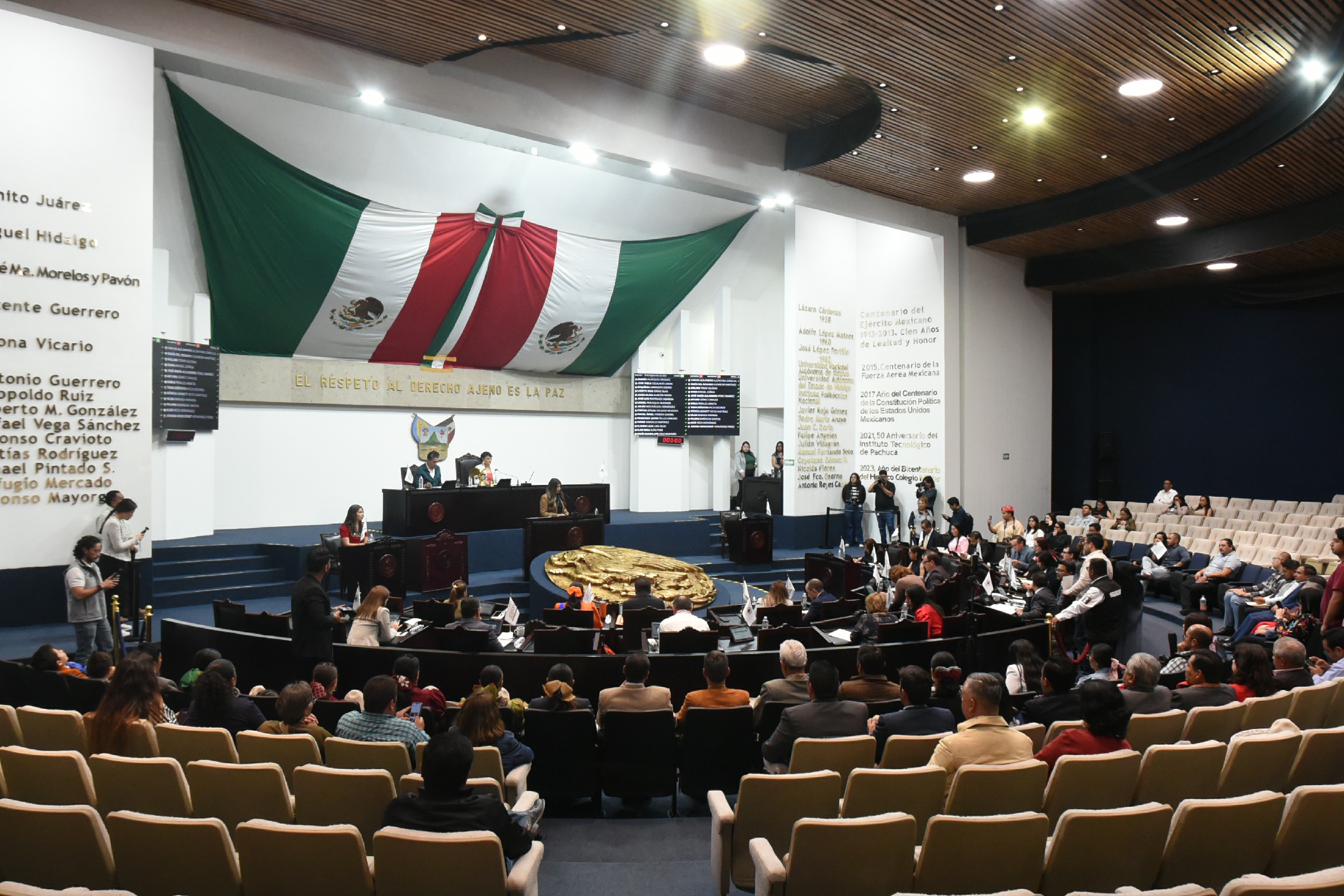 Las y los diputados Leonel Perusquía Muedano (PRD), Tania Eréndira Meza Escorza, Alma Rosa Elías Paso, Aldo Meza Hernández, Diana Rangel Zúñiga (Morena), María Guadalupe Cruz Montaño (PVEM), Juana Olivia Alarcón Rivera, Jorge Argüelles Salazar (Nueva Alianza), Marco Antonio Mendoza Bustamante (PRI), Orquídea Larragoiti Osorio (PT) y Carlos Alejandro Alcántara Carbajal (MC) detallaron la iniciativa que reforma las leyes para Prevenir, Atender, Sancionar y Eliminar la Discriminación, Orgánica de la Administración Pública, Orgánica del Poder Legislativo y Orgánica del Poder Judicial del Estado de Hidalgo.